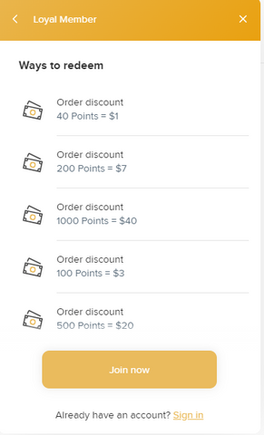 - 40 point redeem $1 coupon for order over $40
